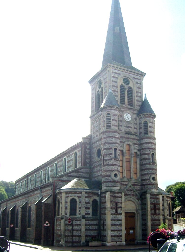 A la fin de l’année 1838, grâce à la participation de tous, pêcheurs qui ramassaient moellons et cailloux sous les falaises, ceux qui par bateau ramenaient de Fécamp du bois de construction, maçons et charpentiers qui offraient leur savoir-faire et leur bras, mareyeurs et charpentiers qui prêtaient charrettes et chevaux, femmes et enfants devenus porteurs d’eau et qui gâchaient le mortier; l’église et son presbytère étaient presque achevés.