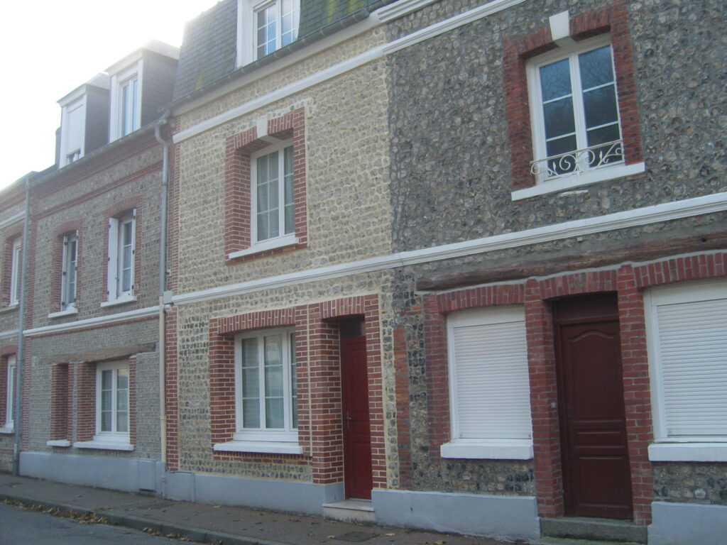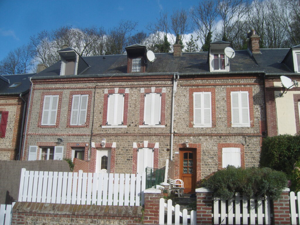 La plupart des maisons blotties les unes contre les autres sont de plain-pied et rares sont celles qui ont un étage. Leur toiture est en chaume ou en paille comme les chaumières du plateau de Caux. Les murs sont en torchis. Puis, peu à peu, les toits se couvrent d’ardoises aux reflets tantôt gris-bleu, tantôt argentés, selon la couleur du ciel. En 1841, un arrêté municipal impose l’ardoise à la plupart des habitations afin de limiter les risques d’incendie même si l’on compte encore quelques bâtisses couvertes en chaume.